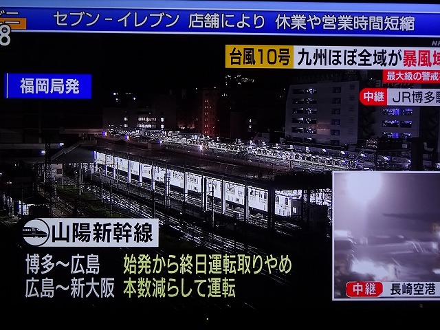 風は強くは吹いていない、3時から9時位が要注意の時間帯とTVで知る。