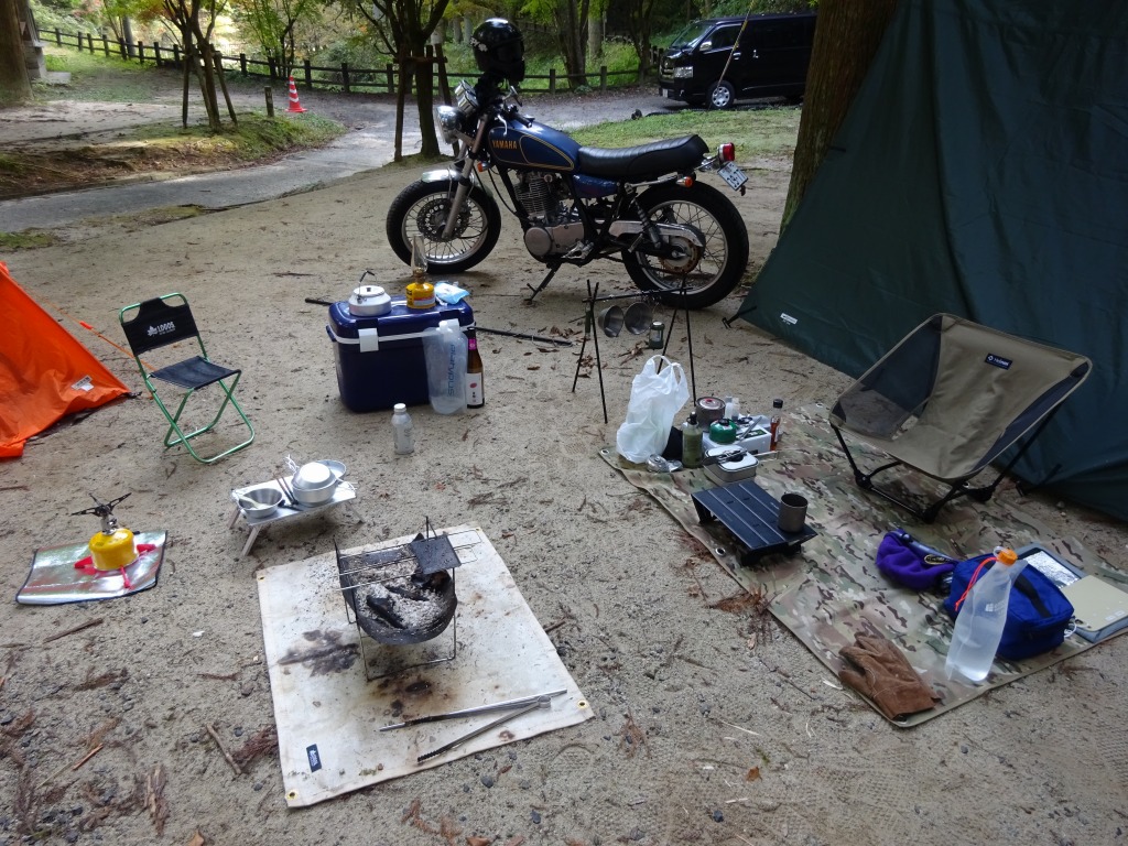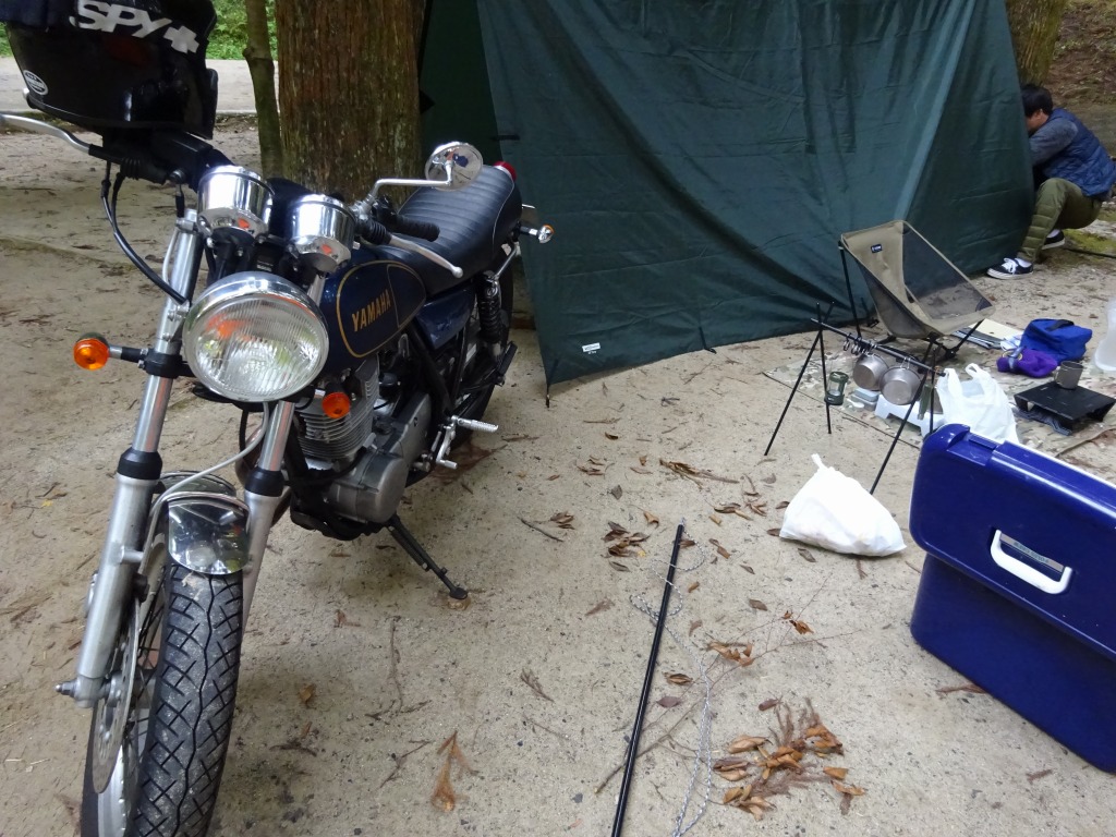 現行ハンターカブも所有、今回はハンモック&タープ。