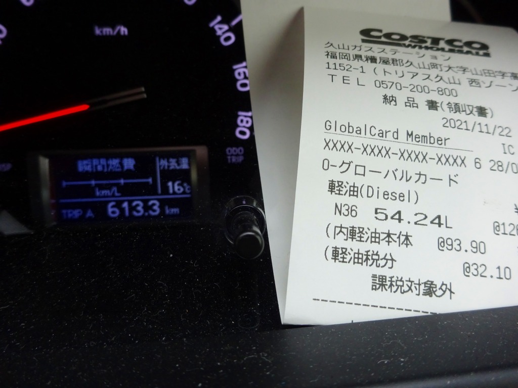 コストコで燃料補給、飯塚から嘉麻市から田川、桂川軽油