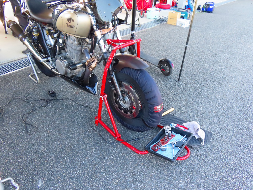 サイドスタンド外さねば、、、レースマシンだから当たり前だが…