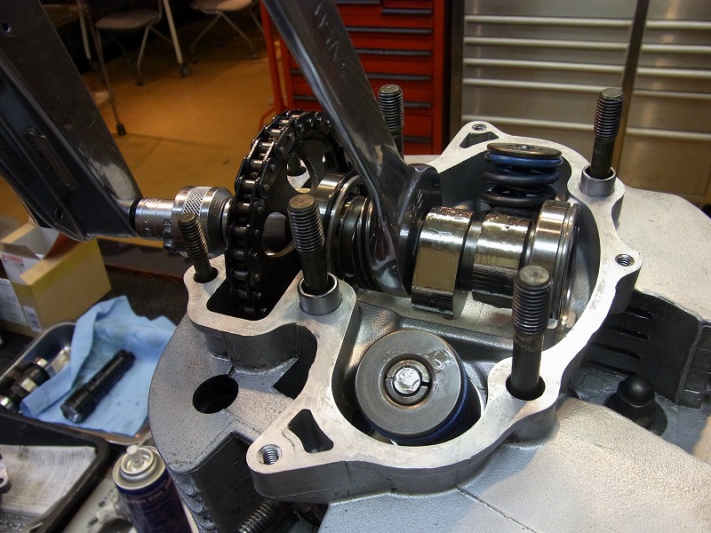 カムチェーン&バルブクリアランス調整で組み立て終了。