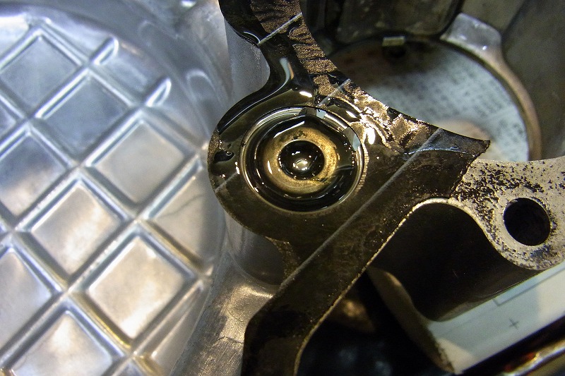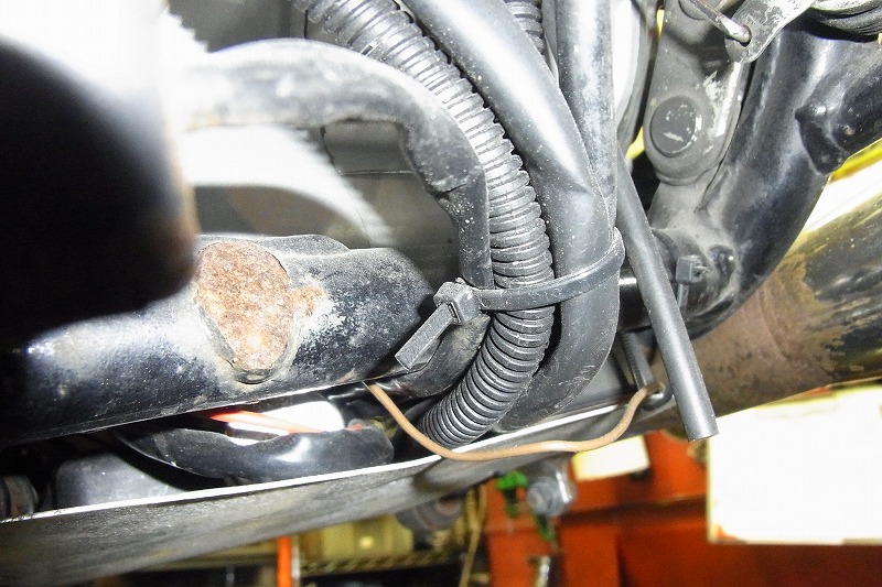 配線を掻き分けドレンボルト登場。