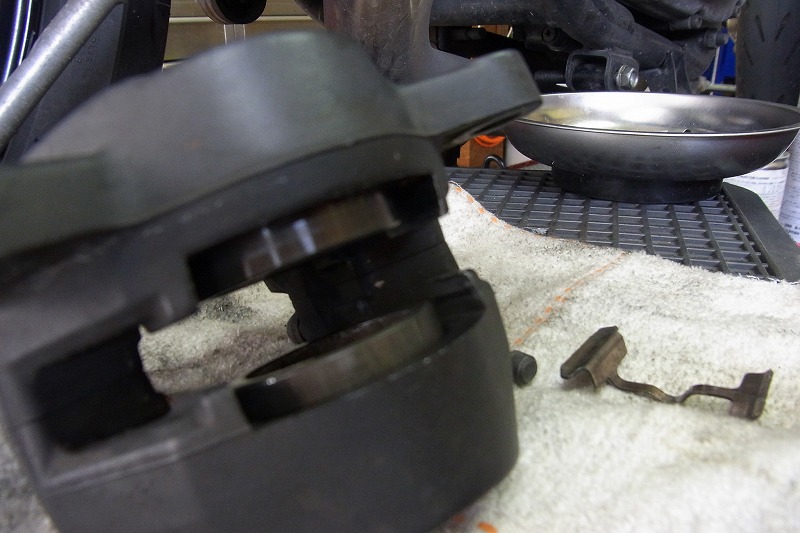 キャリパー点検軽清掃後、ブレーキパッド交換。