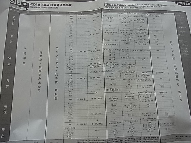 オークション出品における査定表。