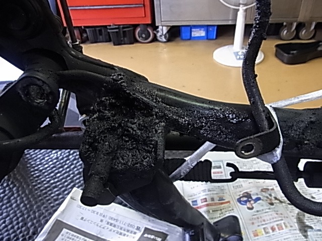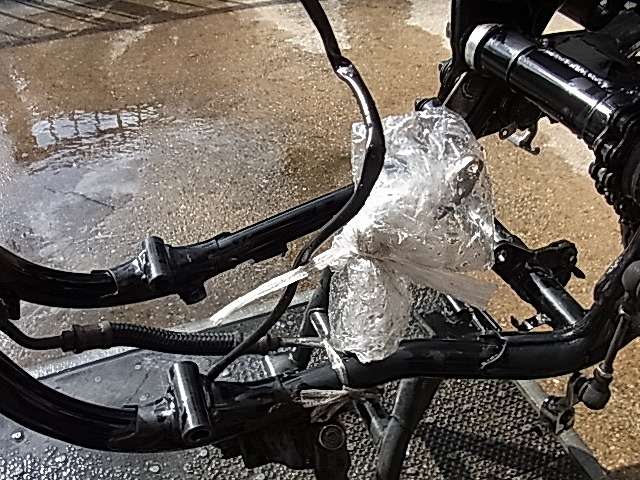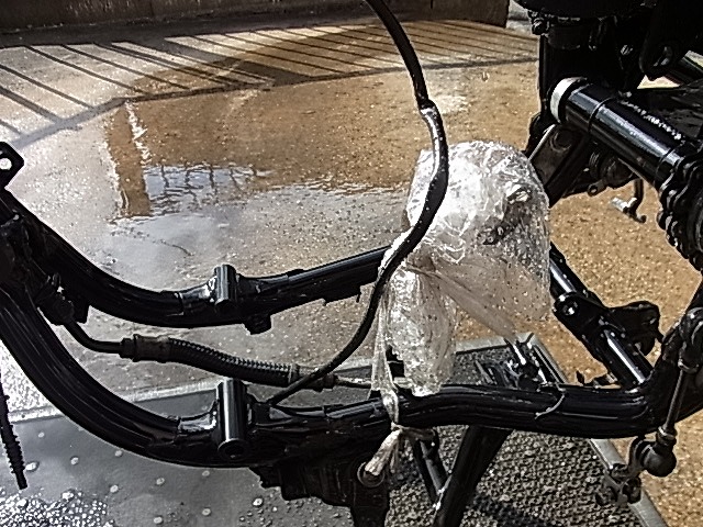 K様のエンジンを降ろす、フレーム、、、、、洗浄します。