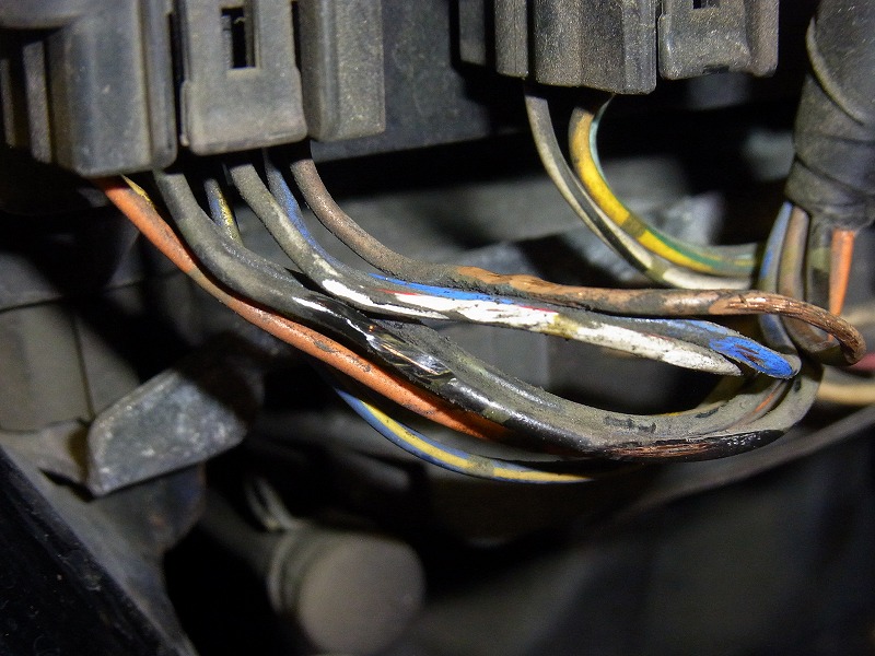 バンドでの固定がされておらず配線が断線寸前。