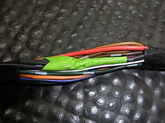 同じ年式、中古ハーネスの保護テープを外す。