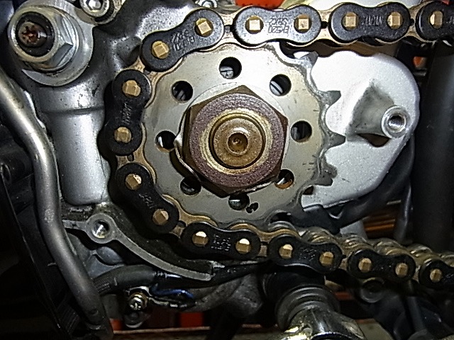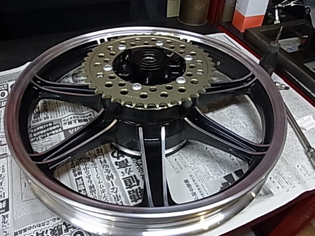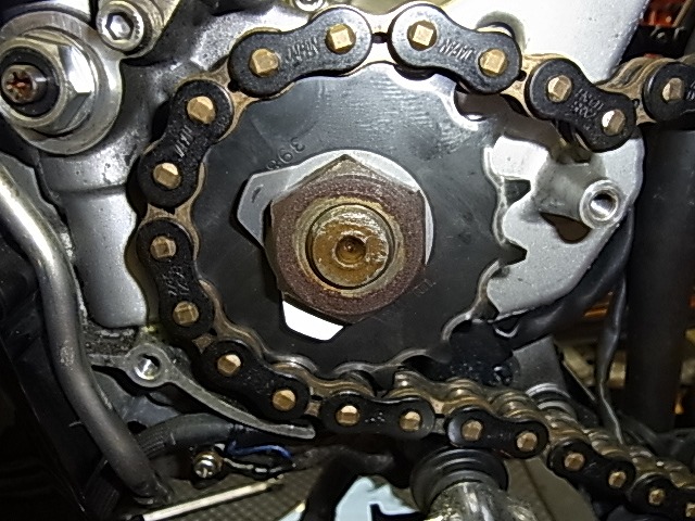 リアスプロケット交換、フロントは中古の「怪」仕様の物と交換させて頂く。