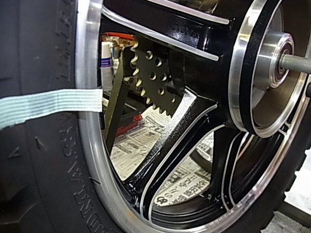 ノーマルリムに130サイズのタイヤを組む。