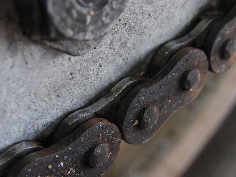 初めての整備で一度チェーンが外れて巻き込んだ形跡があると…。
