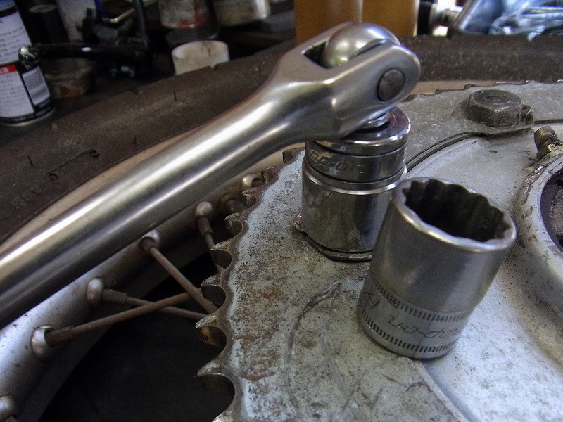 スプロケット取り付けボルト、一つだけインチサイズのモノが。