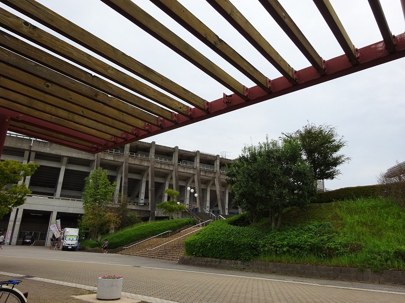 試乗車に乗り都市高速、お店から競技場迄は20分位だな。