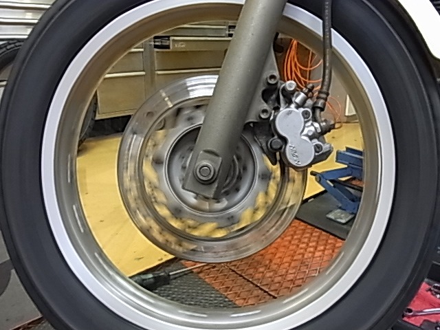フロントブレーキローター、今お使いのブレーキパッドが終了時に再点検ですね。