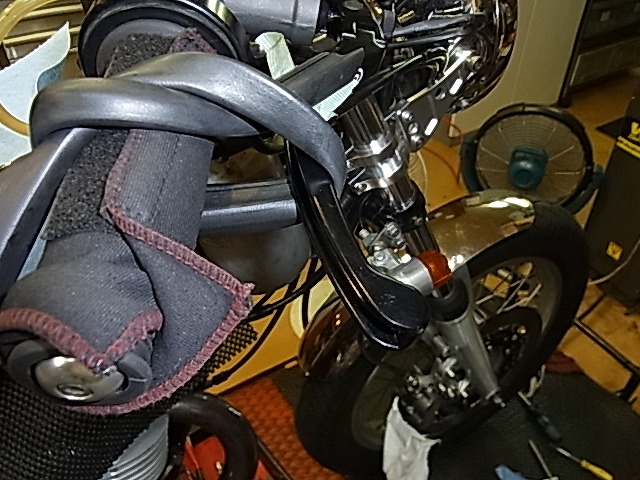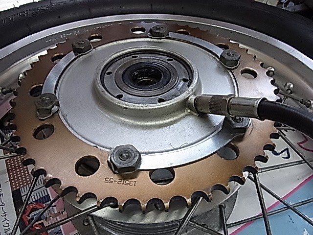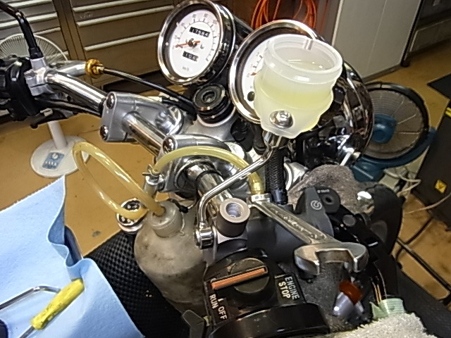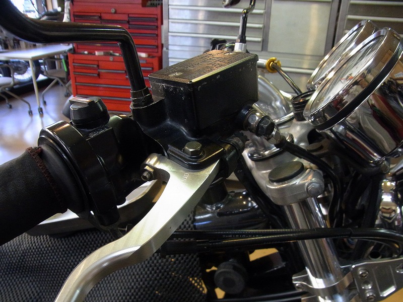 ノーマルマスターシリンダー時から使用していた「ワンオフ・ブレーキホース」。