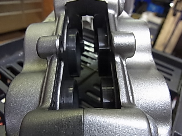 純正キャリパーはスチールピストン、ブレンボはアルミ製。