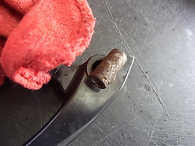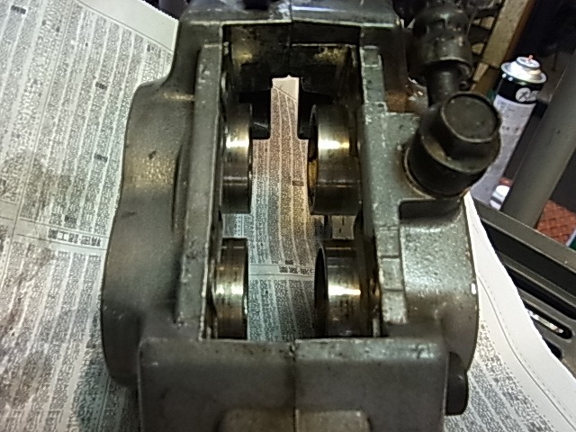 フロントキャリパー点検軽清掃、ピストンはちゃんと出てくる。