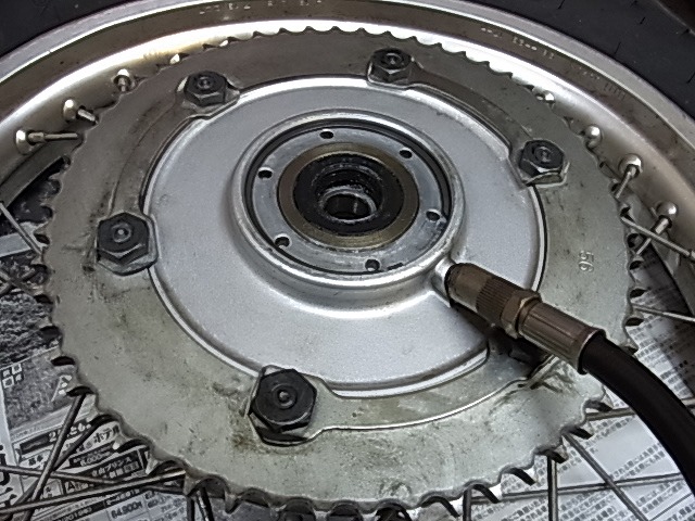 スイングアームピボット、抜ける状態を確認してグリス注入。