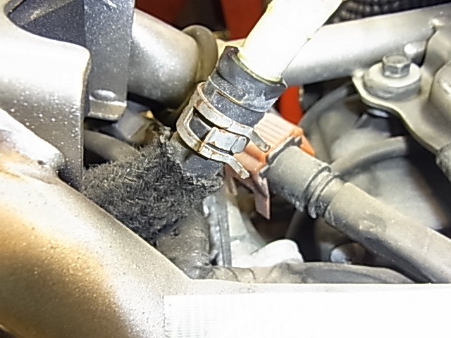 ケーブル類注油の為にアクセルワイヤー保護被膜の切れ目をテープで塞ぎます。