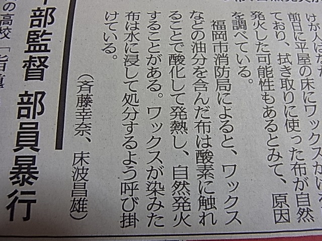 ワックス等の油分を含んだ布、自然発火する事があるそうです…。