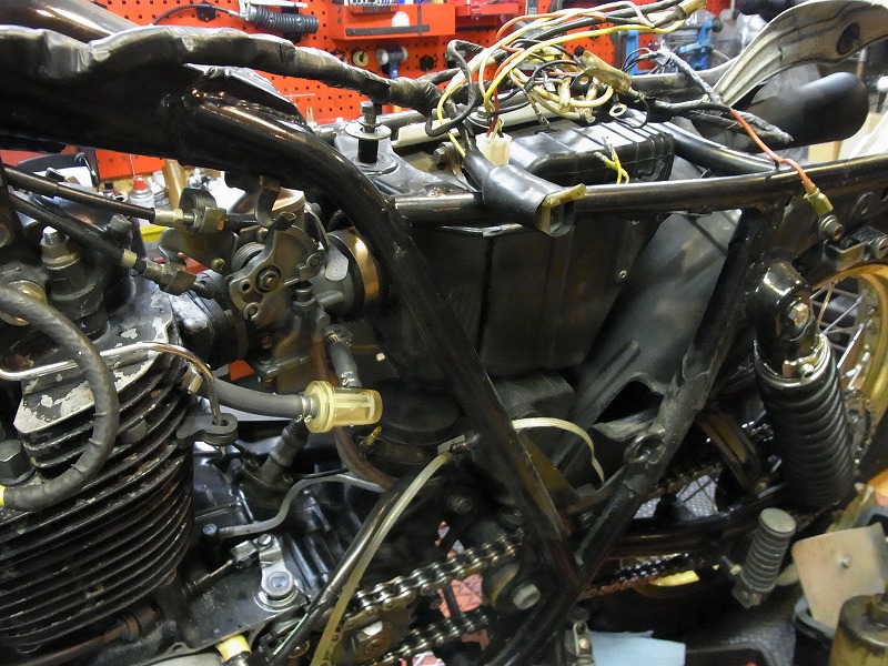XTのハーネスを取り外し、SR用メインハーネスに組み替えます。