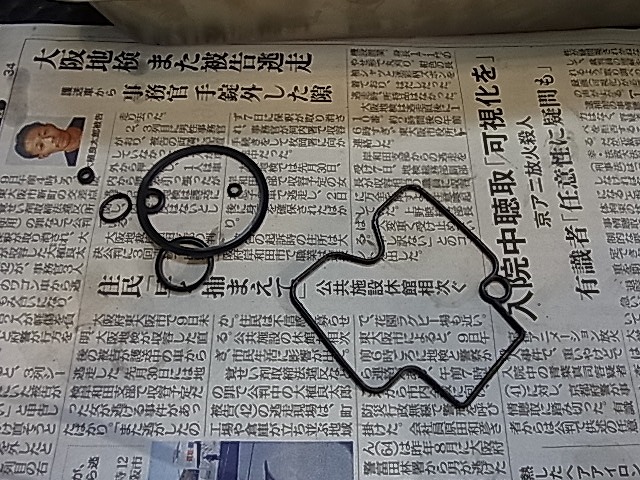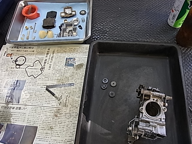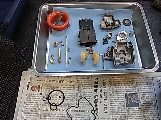 フロートチャンバー室からのガソリン滲みがありました、FCRキャブレター点検。