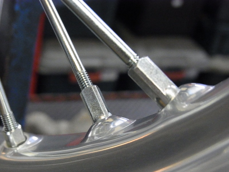 リムを組み立て終え、バランス取りに入ります。