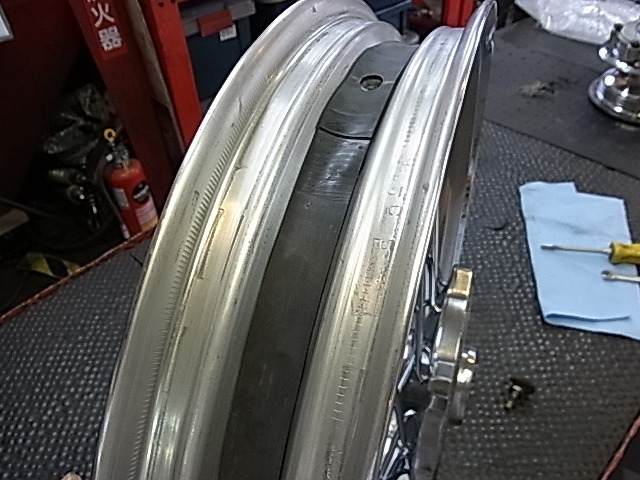 リアホイールは結構時間が掛かりそう…当店のSRに仮付けして。。。