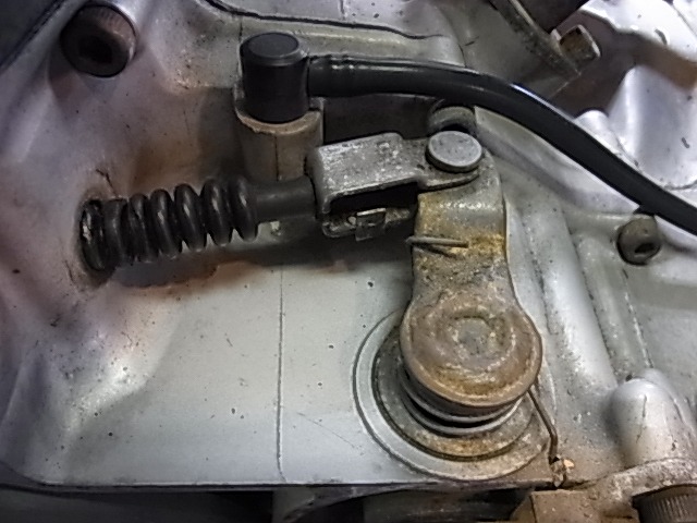 クラッチプッシュレバー位置はココか、プッシュロッドだな。