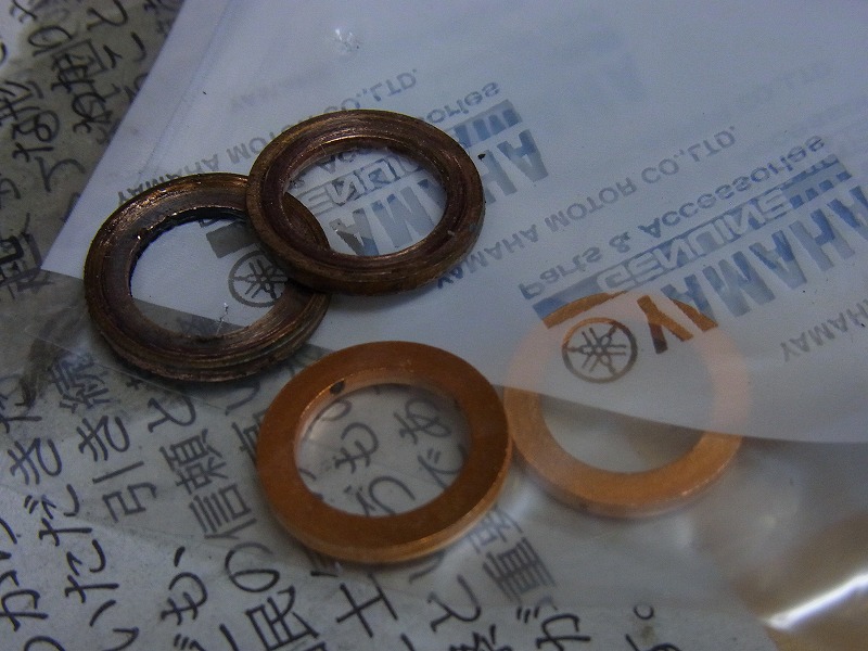 フォークドレンボルト・ワッシャーが潰れております。