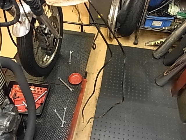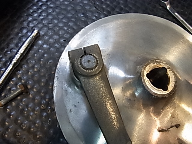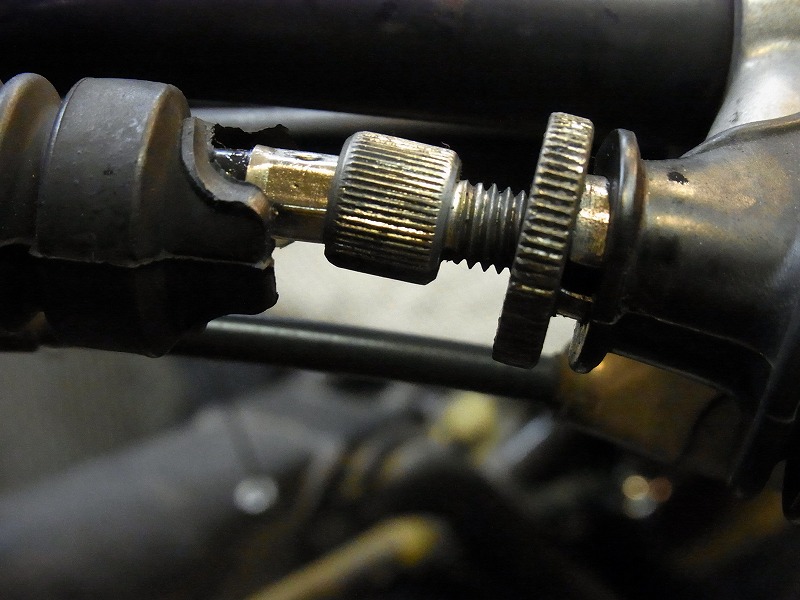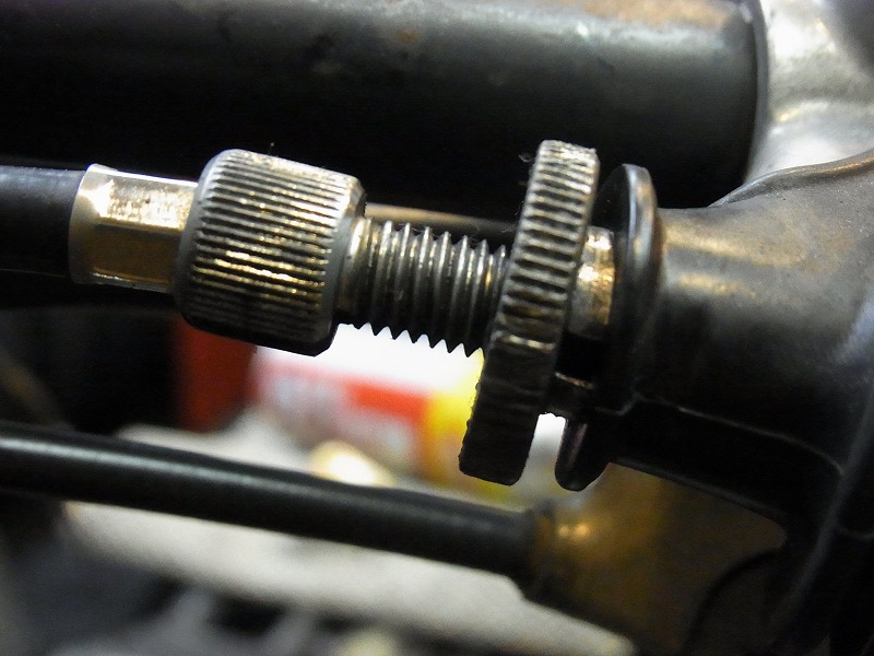 クラッチケーブル、伸びもあるでしょうがエンジン側プッシュロッドカムを見る。