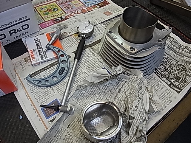 純正1ミリオーバーサイズピストン、ボーリング加工が終わりました。