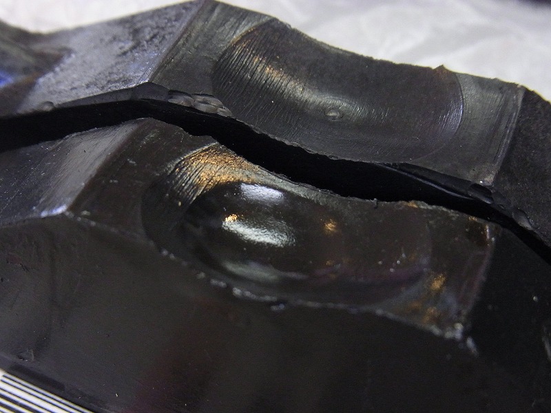 カムチェーン調整ロッドが、ガイド裏を押し凹ませるのです。。。