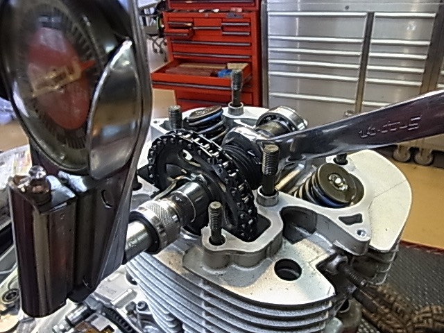 カムチェーンを掛け、今迄使用していたガイド取り付け。