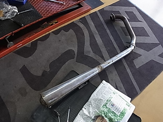 消音機側のナットは落ちる、リベットは飛んでおります…。