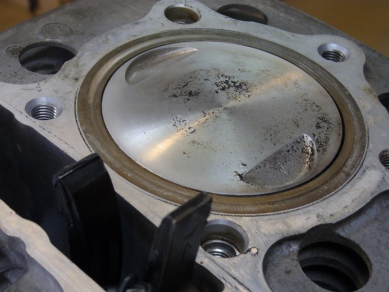 オイル下がりでしょう、ピストン表面はオイル下がりによるべとつきはありません。