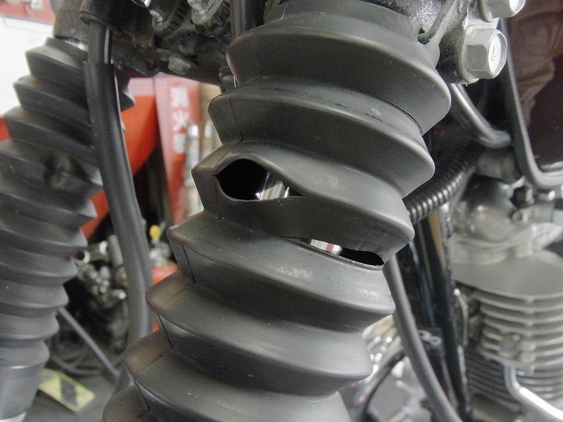 フォークブーツが切れてますね。