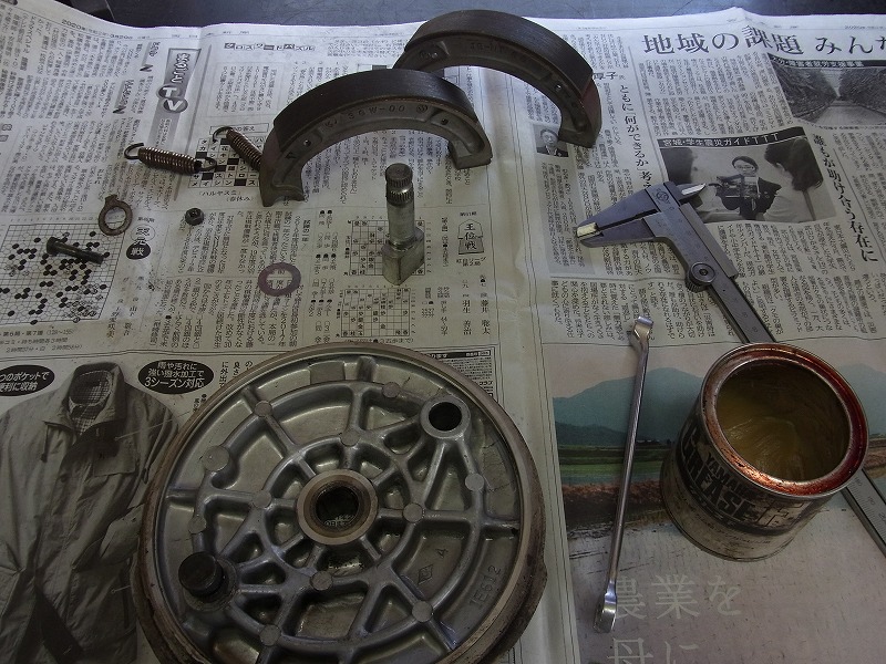 リアブレーキハブ内、点検清掃。