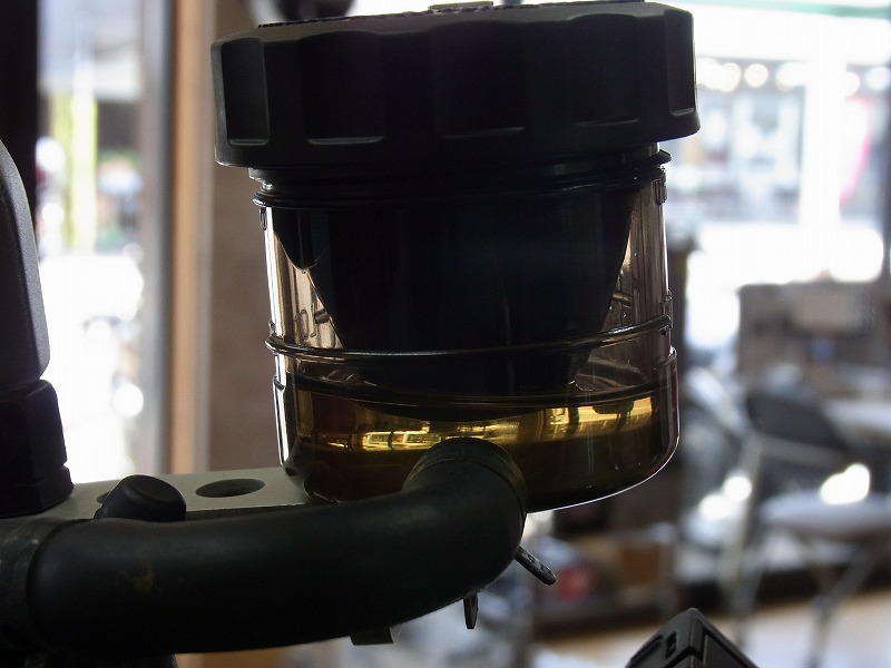 キャリパーからフルード抜きとり、ダイヤフラムが引っ張られます。