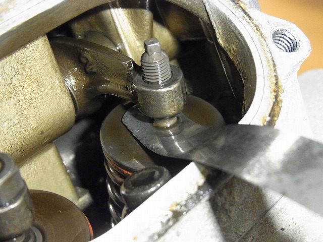 バルブクリアランス調整前にプラグホール周辺をエアブロー。