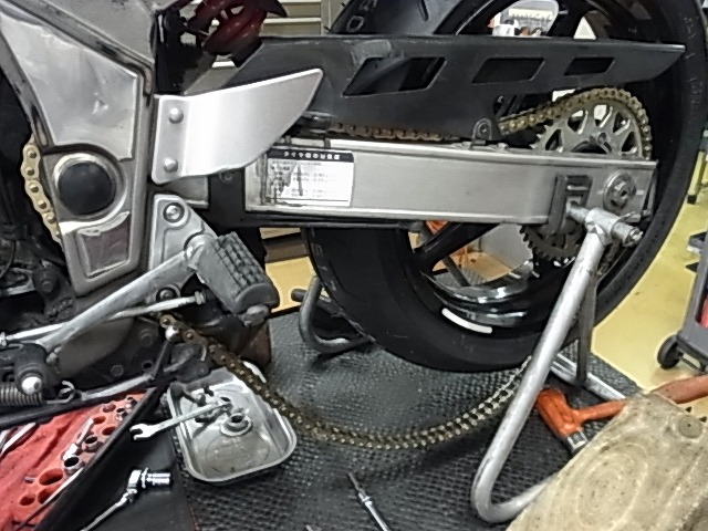 チェーンが入荷で交換、二コマ切断。