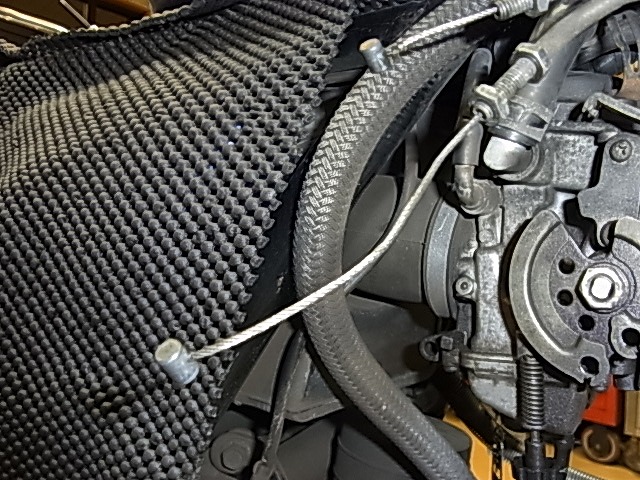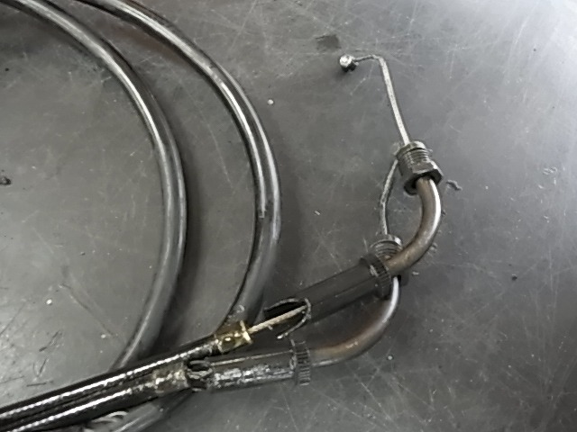 アクセルを回しても曲ったケーブルが引っ掛かり、自動的には戻りません。