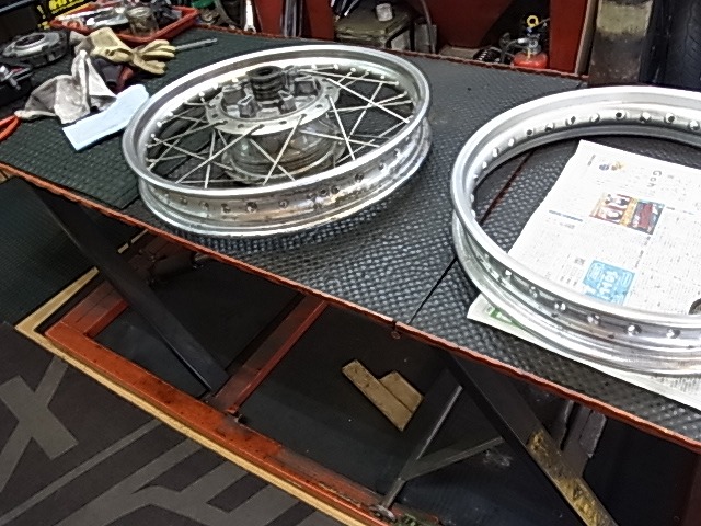 お客様のバイク整備中の合間、部品待ち等の間に中古車整備を進めております。