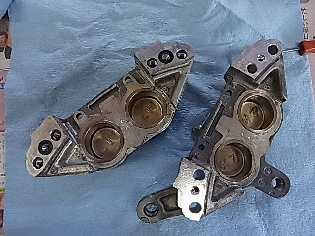 キャリパー単体でピストン&ボルトが固着してあったので結構大変でした。