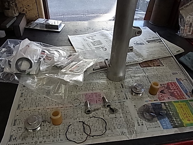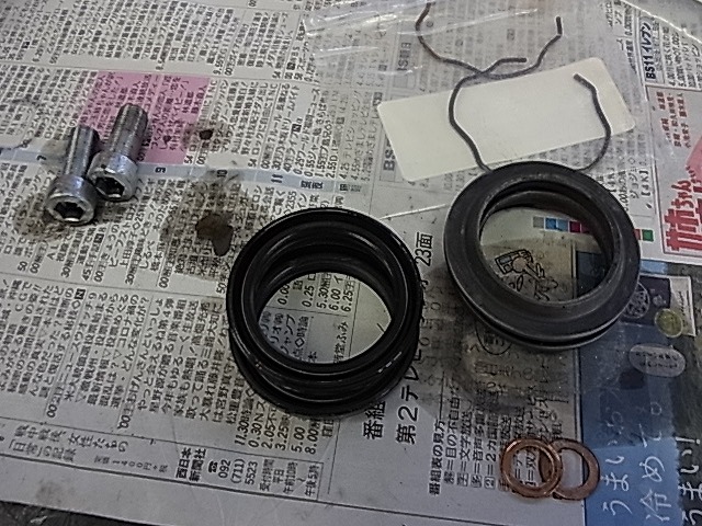 フロントフォーク、オイルシール以外にもクリップ等を交換します。
