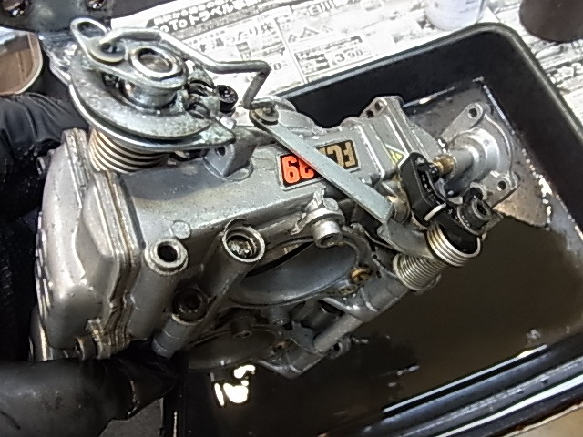 装着後、約2万キロ走行したFCRキャブレター、外部の汚れも結構ありました。