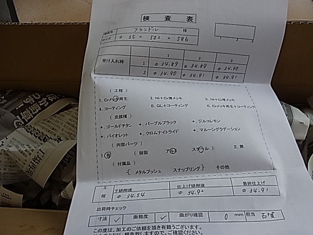 インナーチューブの再メッキが出来上がってきました。
