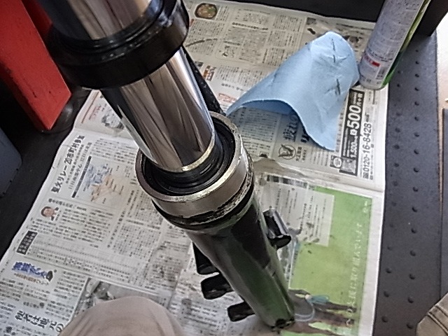 インナーチューブ摺動部迄小さな錆がでており、再メッキする事に。