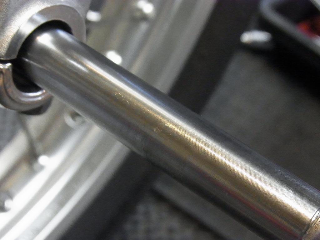 フロントホイール・アクスルシャフトも油分無し。