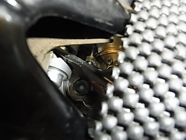 個体差?微妙にエンジン搭載ポジションが…仮付けでキャブとフレームが干渉…。