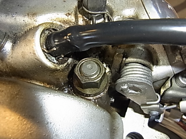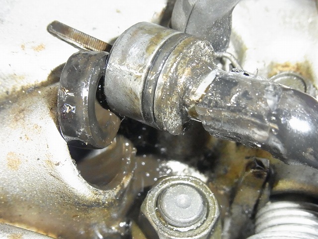 カバーOリングからでなく、タコメーターケーブル取り出し部ですね。